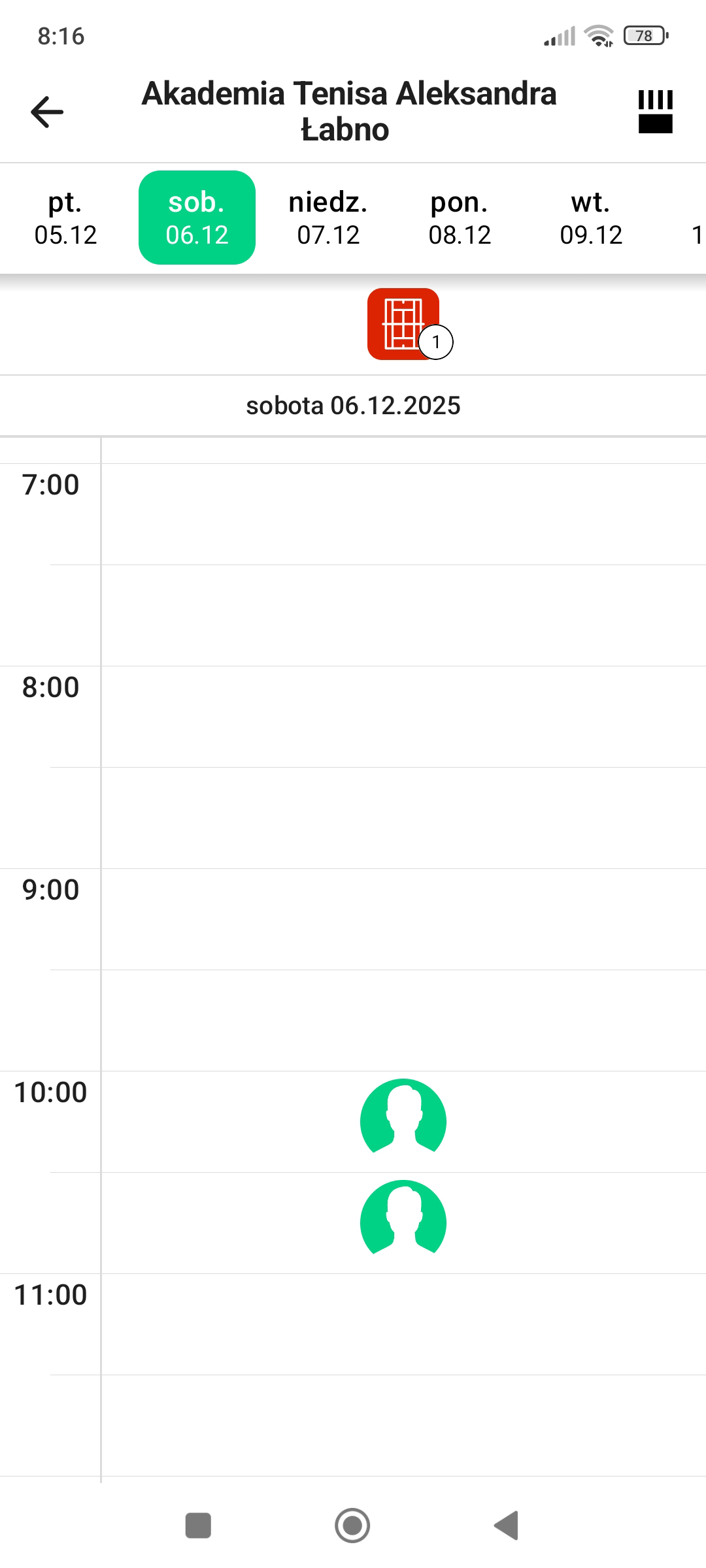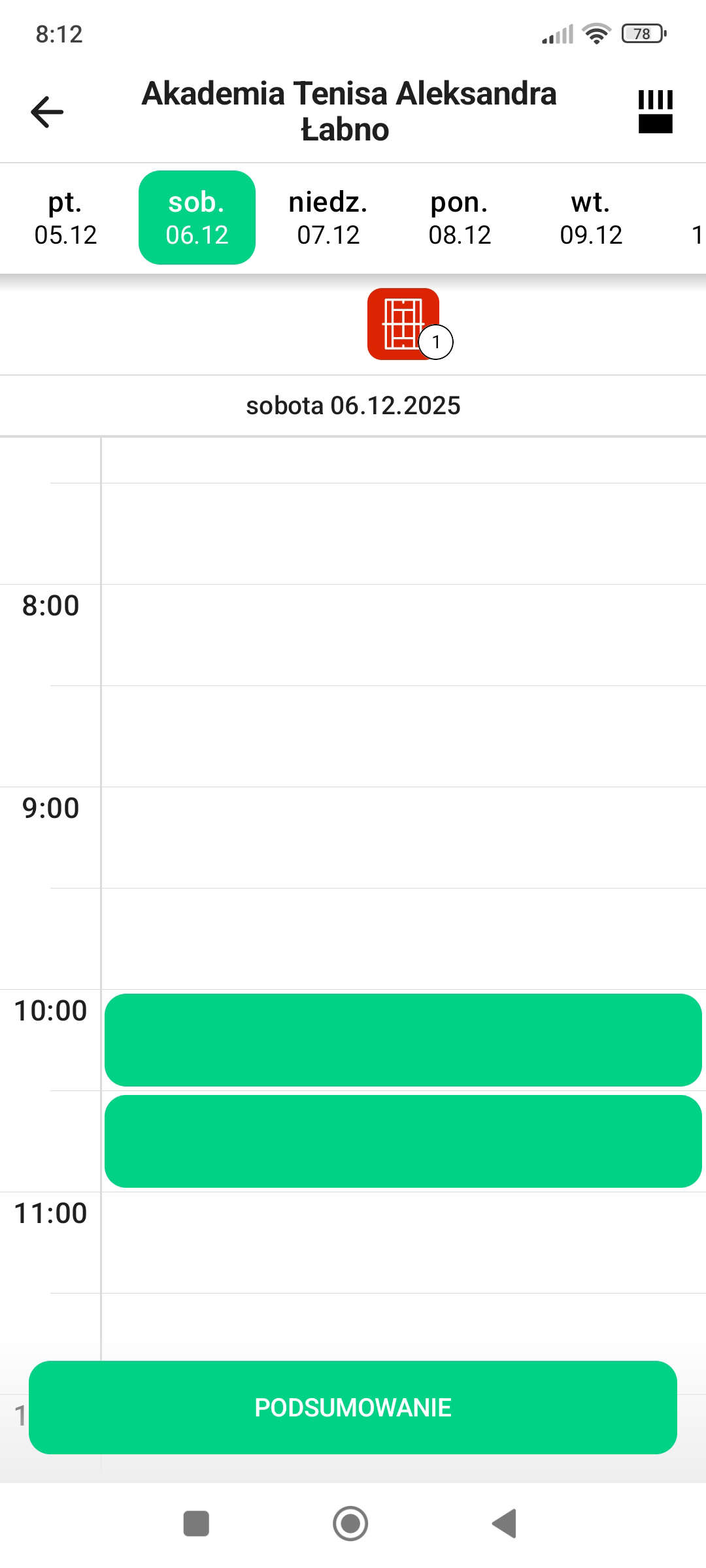 widoczna rezerwacja użytkownika